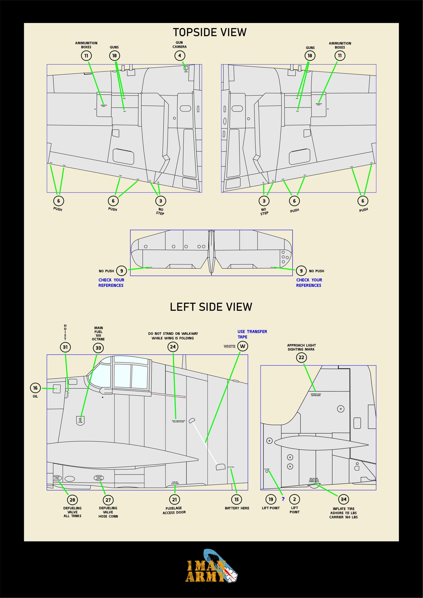 1ManArmy Airfix Grumman F6F-5 Hellcat 1/24 Basic Markings & Stencil High-Definition Paint Masks, 24DET017