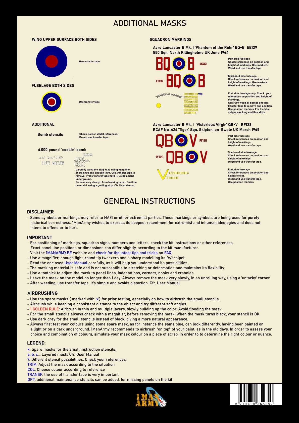 1ManArmy Border Model Avro Lancaster B Mk.I 1/32 Basic Markings & Stencil High-Definition Paint Masks, 32DET042