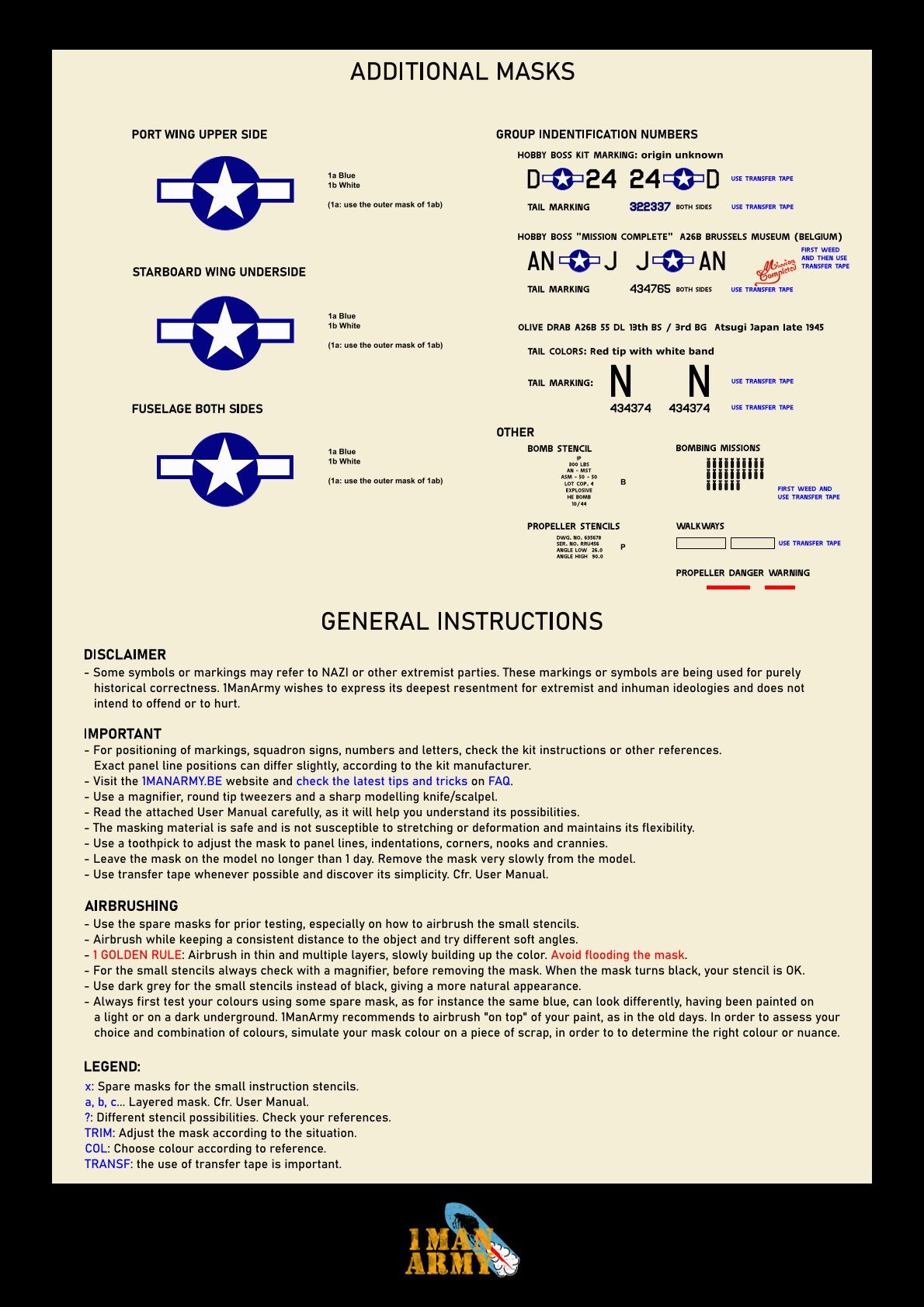 1ManArmy Hobby Boss A-26B Invader 1/32 Basic Markings & Stencil High-Definition Paint Masks, 32DET044