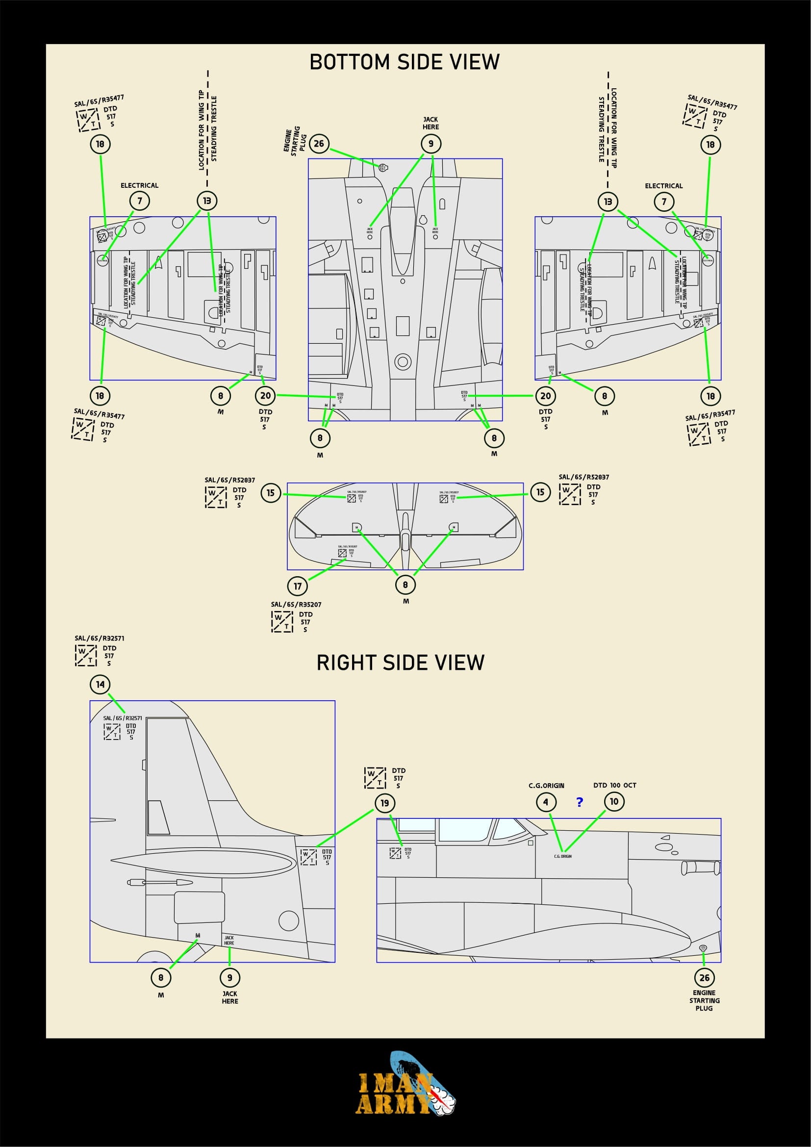 1ManArmy Spitfire Mk.I/II RAF 1/32 Basic Markings & Stencil High-Definition Paint Masks, 32DET013