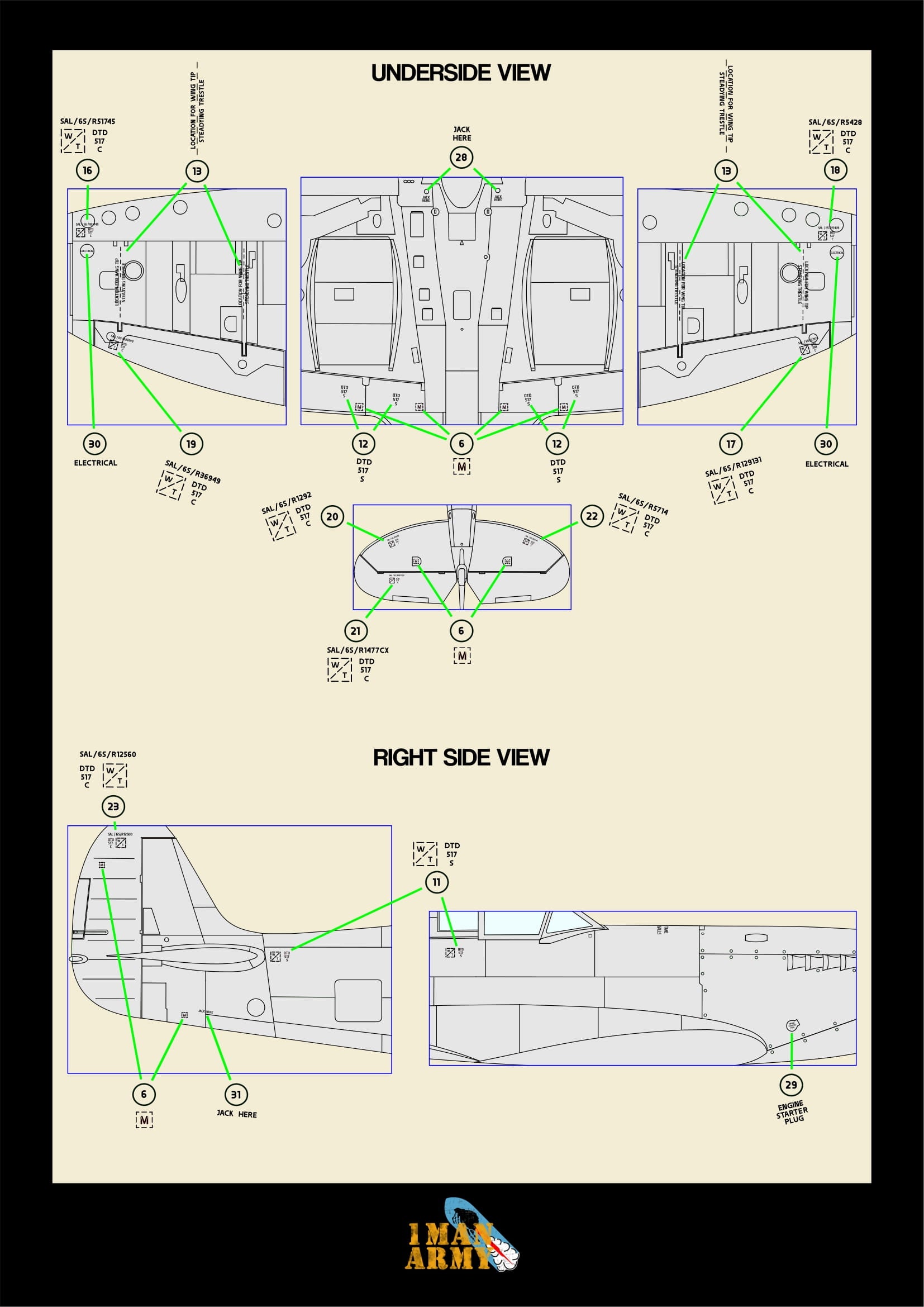 1ManArmy Tamiya Supermarine Spitfire Mk.VIII 1/32 Basic Markings & Stencil High-Definition Paint Masks, 32DET058