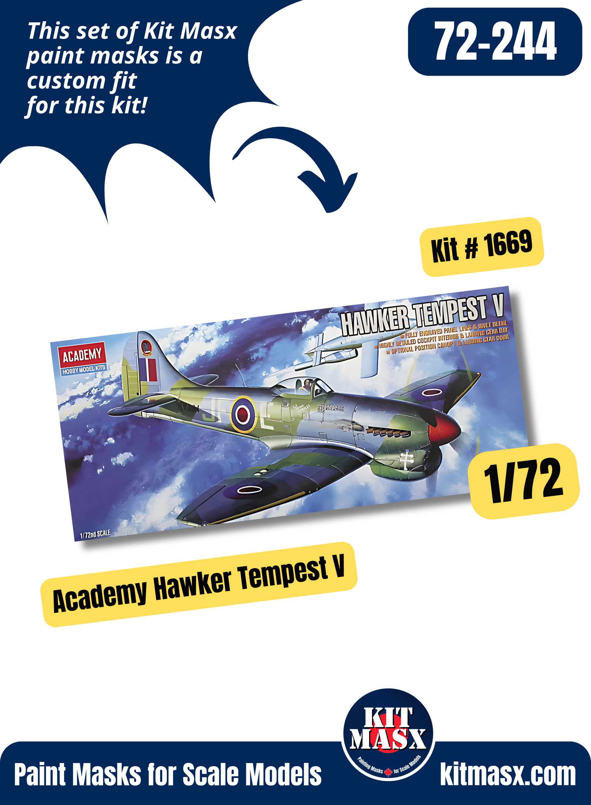Academy Hawker Tempest Mk.V 1/72 Canopy & Wheel Paint Masks, Kit # 1669