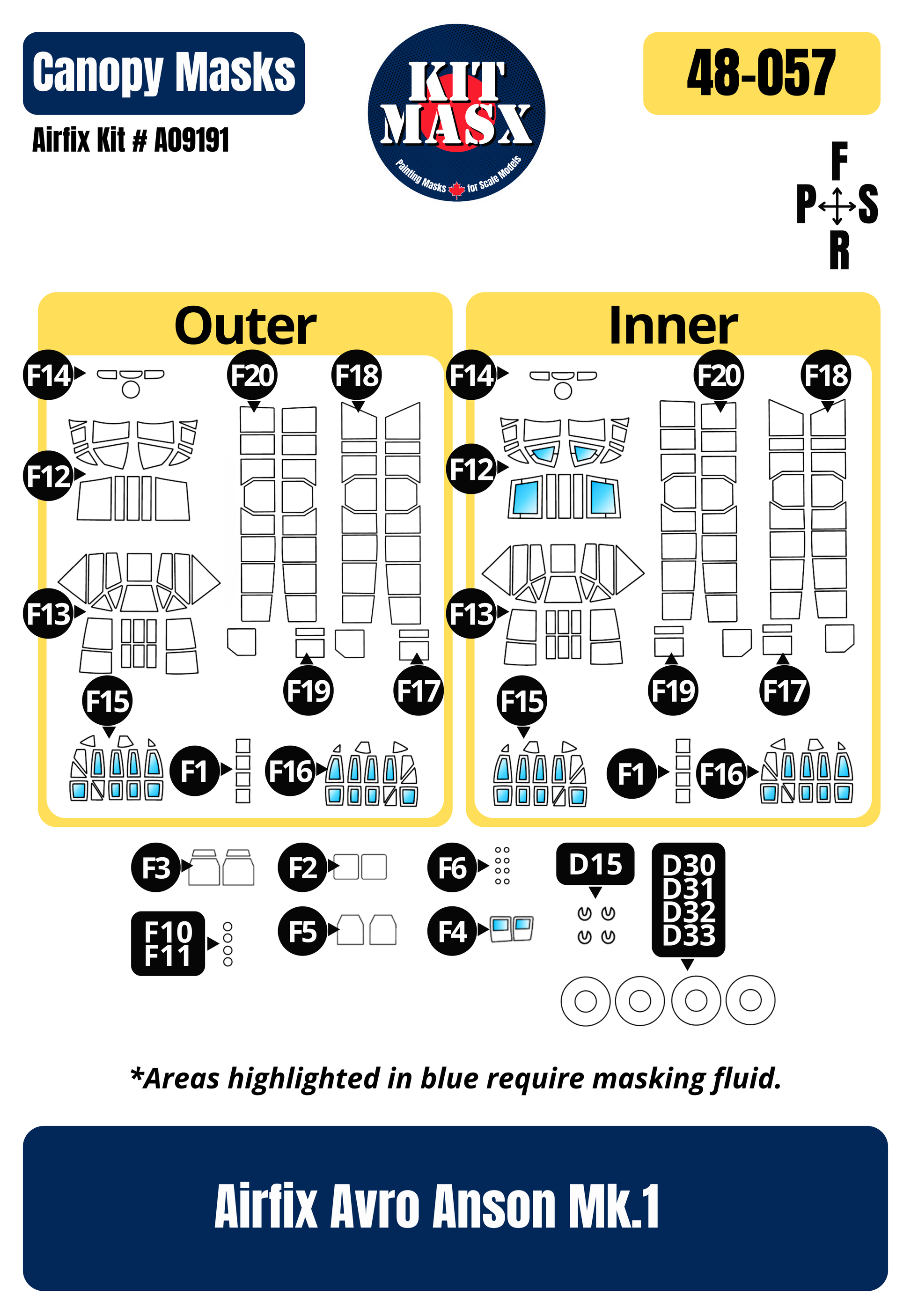 ➡️ Masking fluid is required in conjunction with the masks for compound curves. All areas requiring masking fluid are highlighted in blue in the product image.