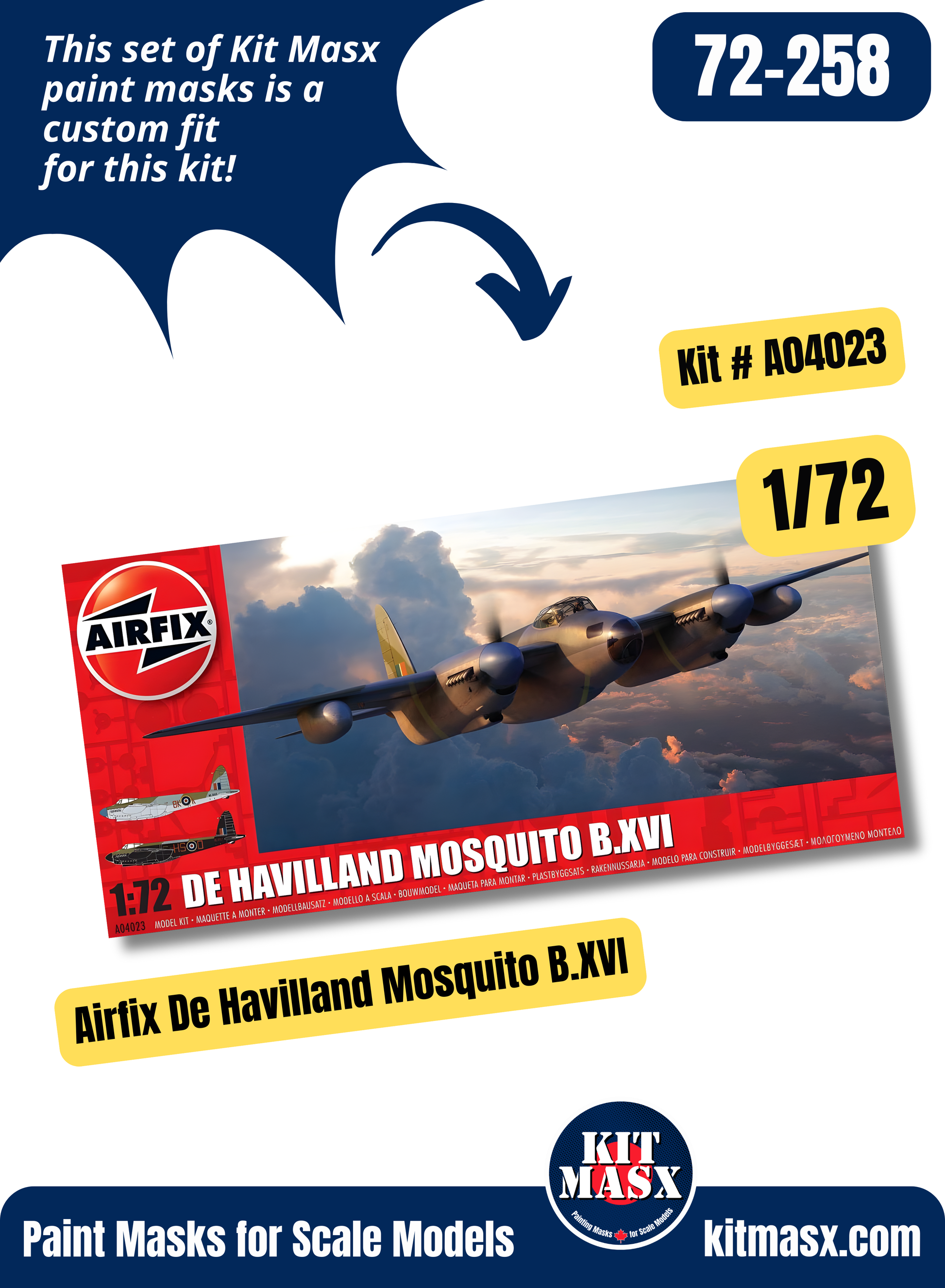 Airfix De Havilland Mosquito B.XVI 1/72 Canopy Paint Masks, Kit # A04023