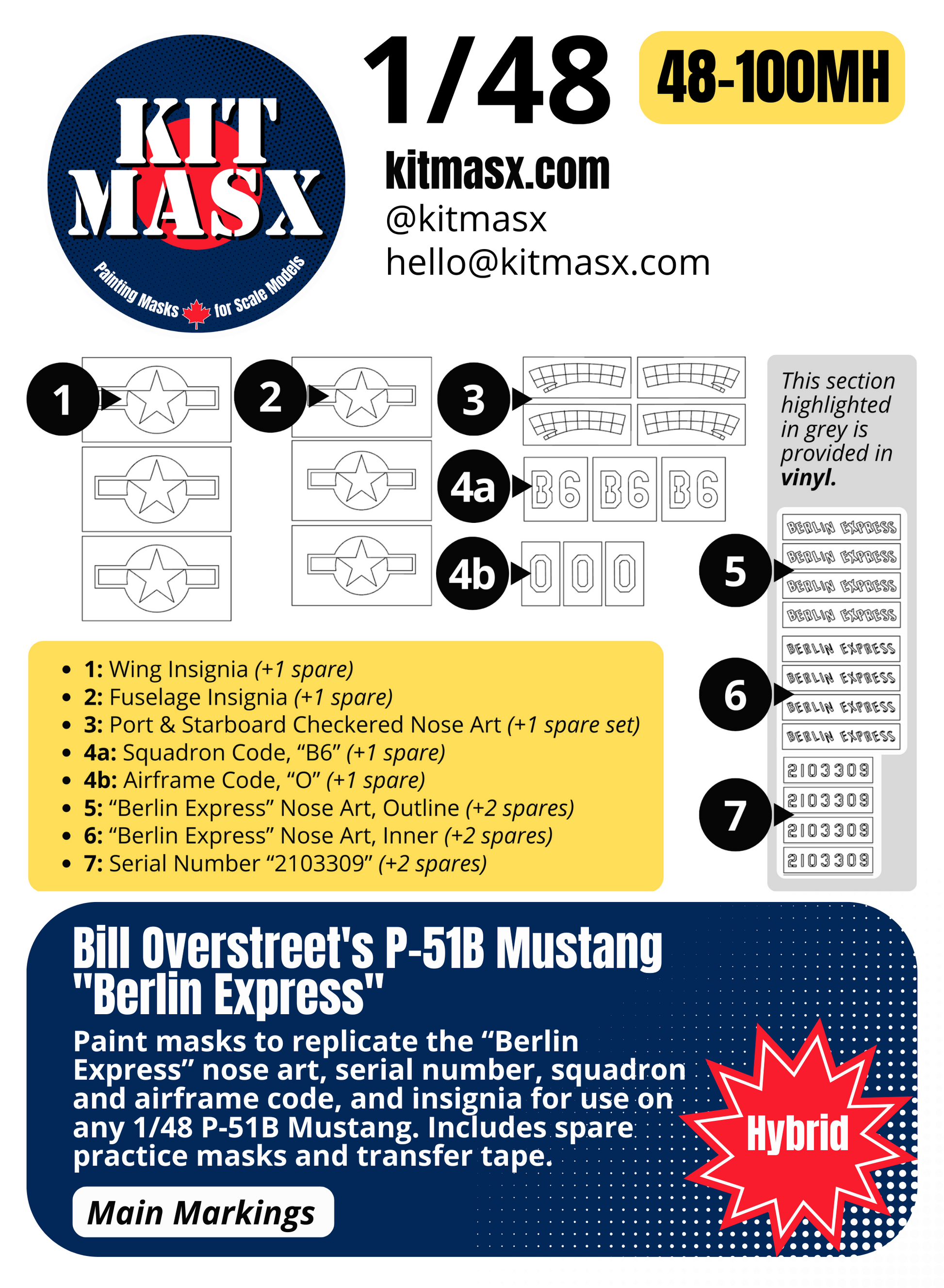 Bill Overstreet's P-51B Mustang "Berlin Express" 1/48 Main Marking Paint Masks