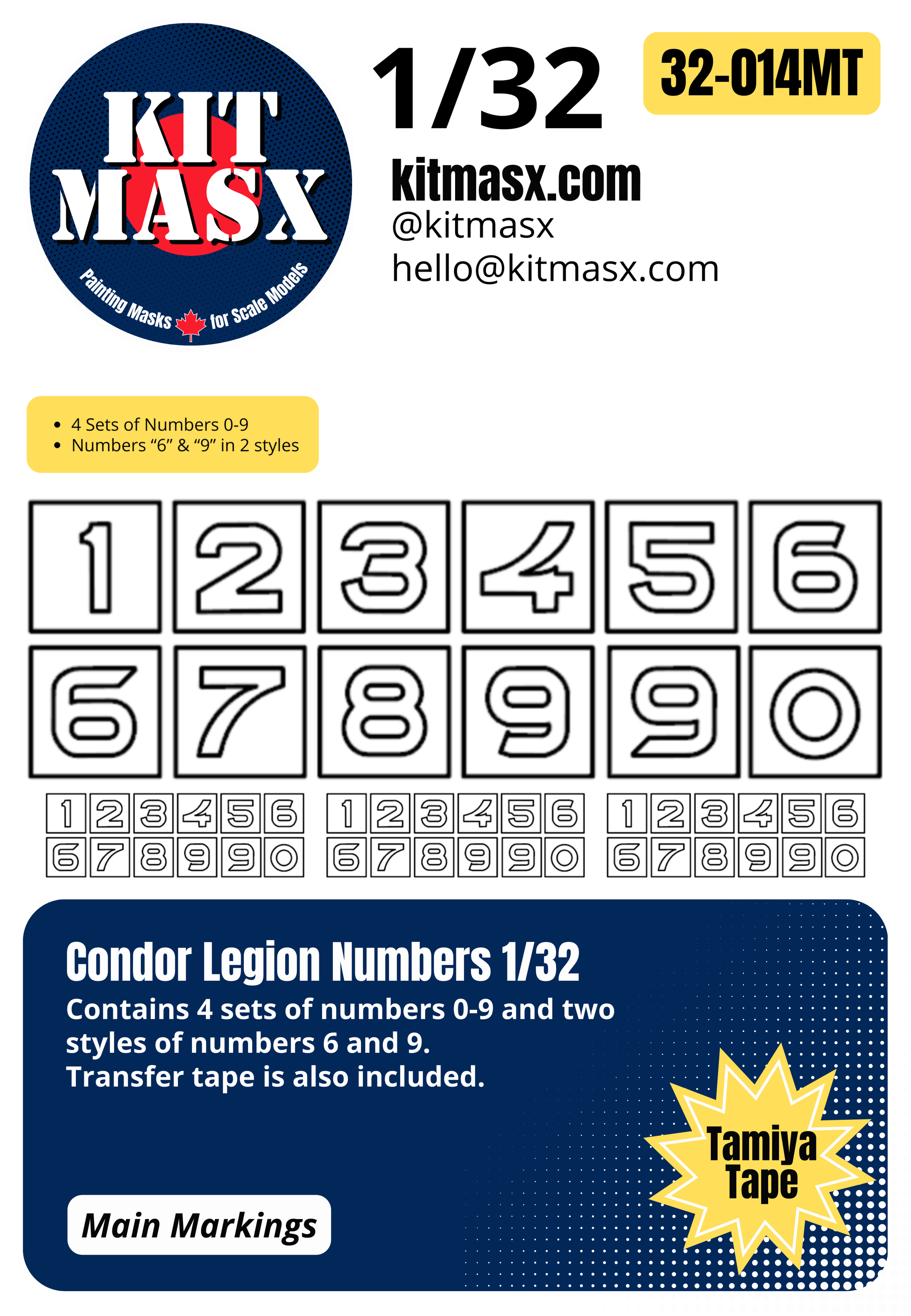 Condor Legion Numbers 1/32, 1/48, & 1/72 Main Marking Paint Masks