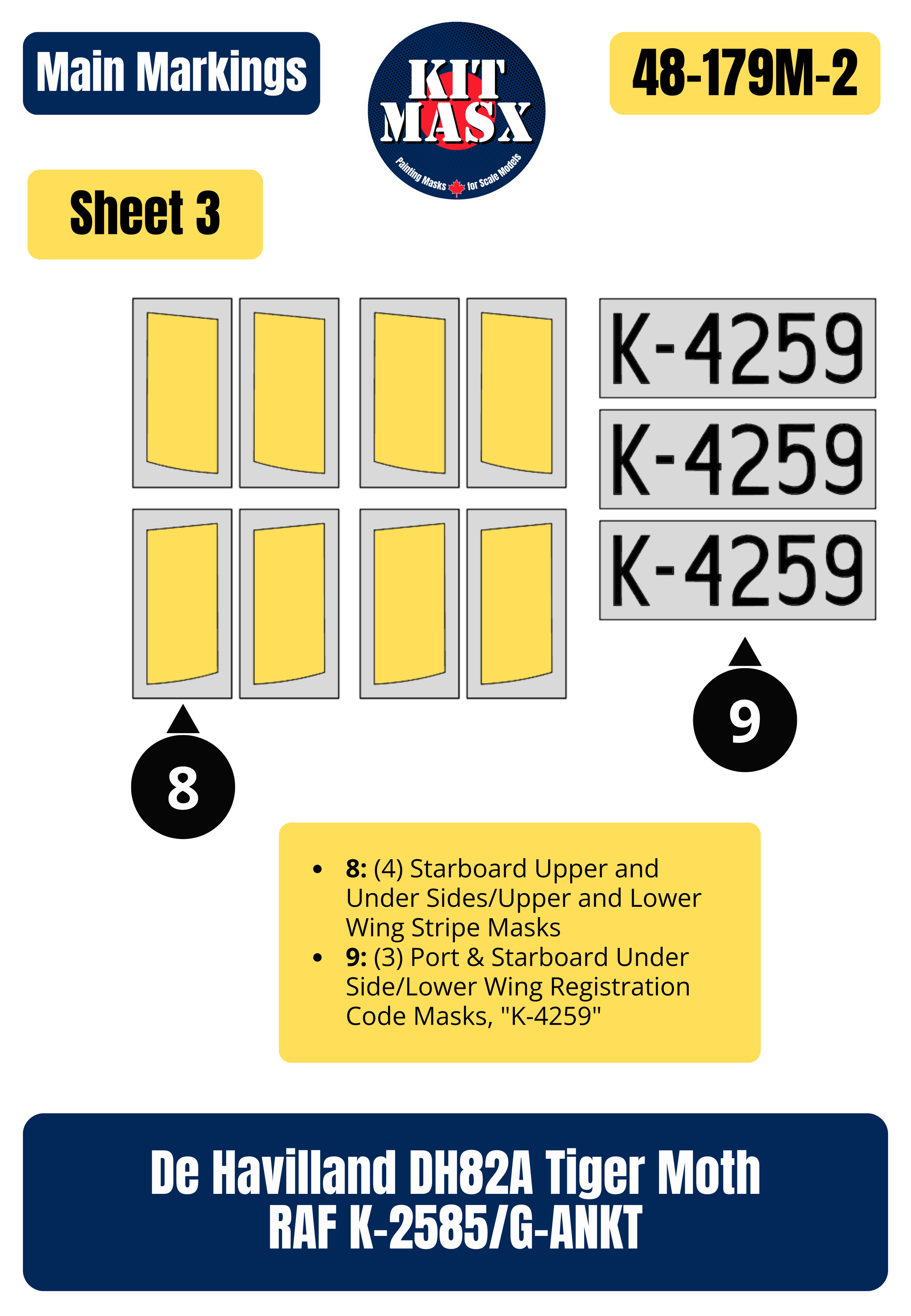 - 👉 Main Markings for De Havilland DH82A Tiger Moth RAF K-4259/G-ANMO