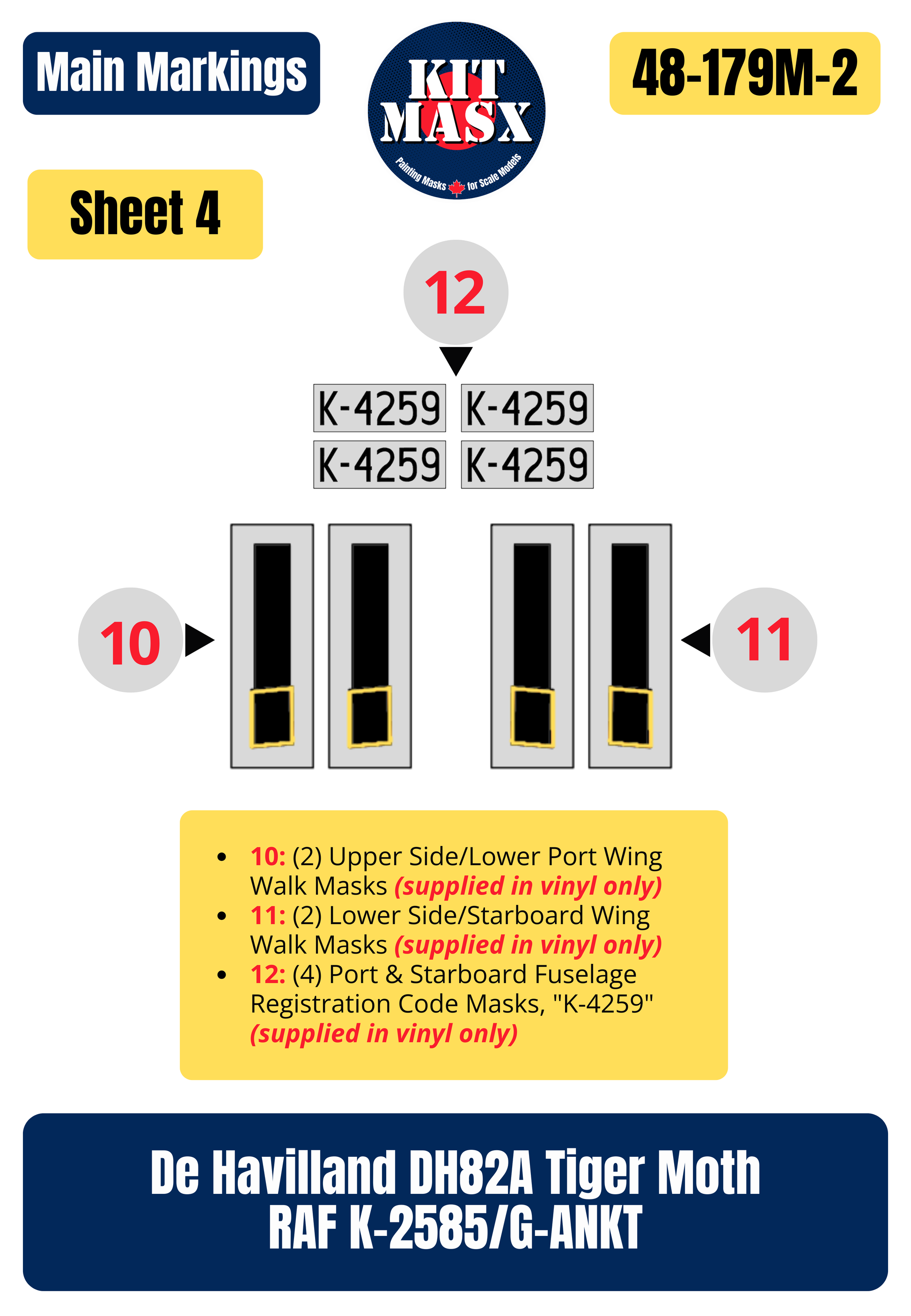- 12: (4) Port & Starboard Fuselage Registration Code Masks, "K-4259" (supplied in vinyl only)
