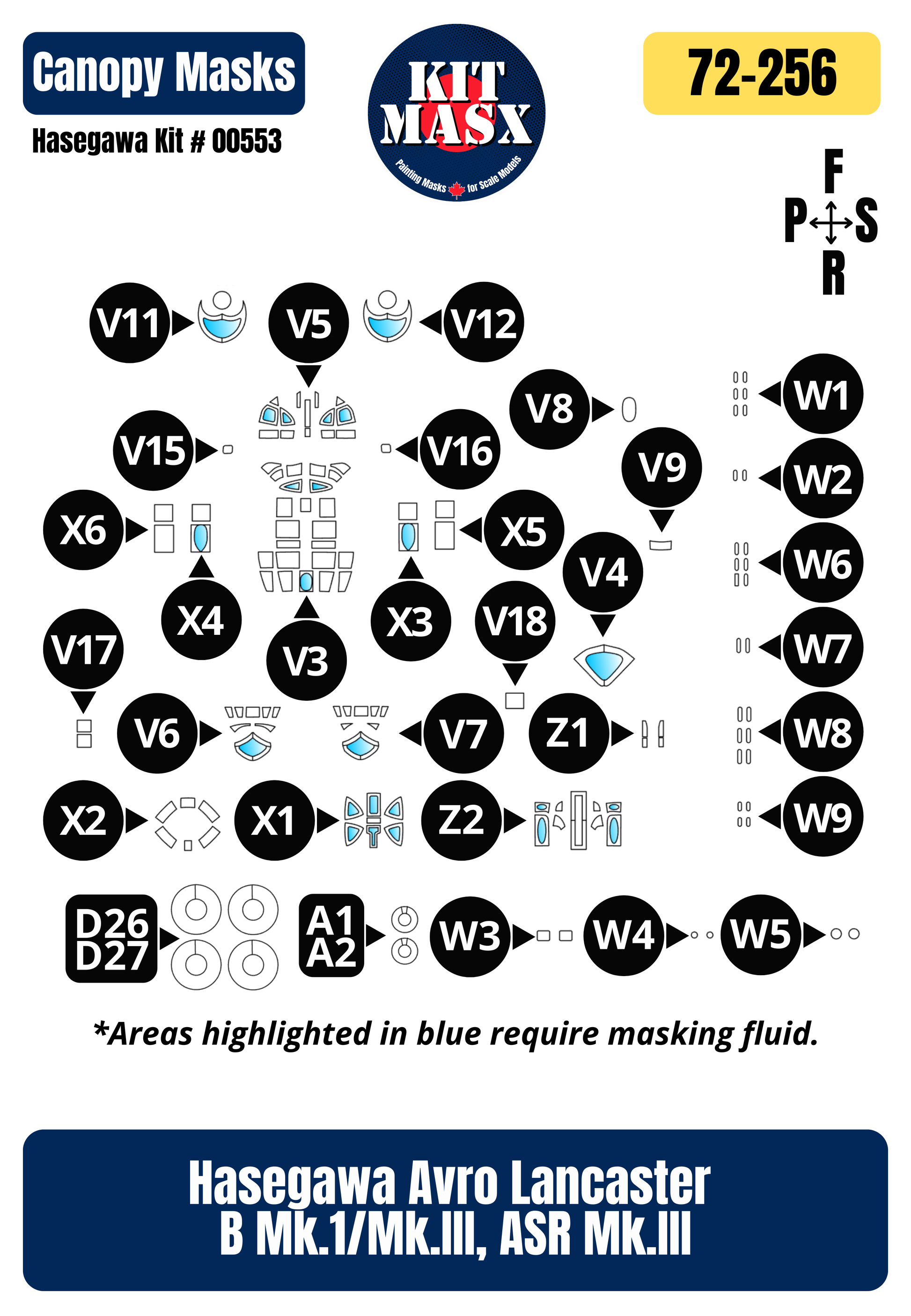 Hasegawa Avro Lancaster B Mk.1/Mk.III, ASR Mk.III 1/72 Canopy & Wheel Paint Masks, Kit # 00553