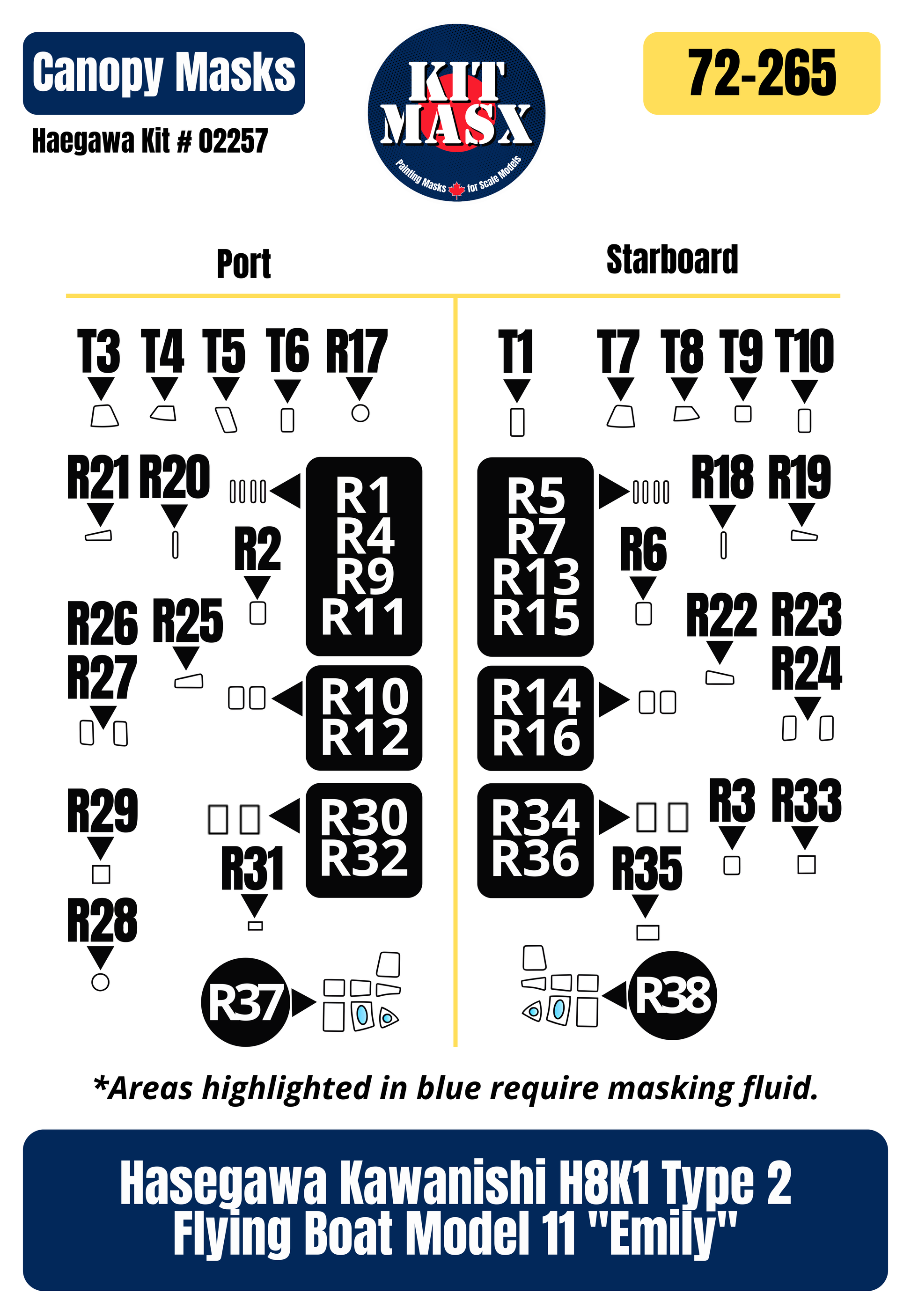 ➡️ Masking fluid is required in conjunction with the masks for compound curves. All areas requiring masking fluid are highlighted in blue in the product image.