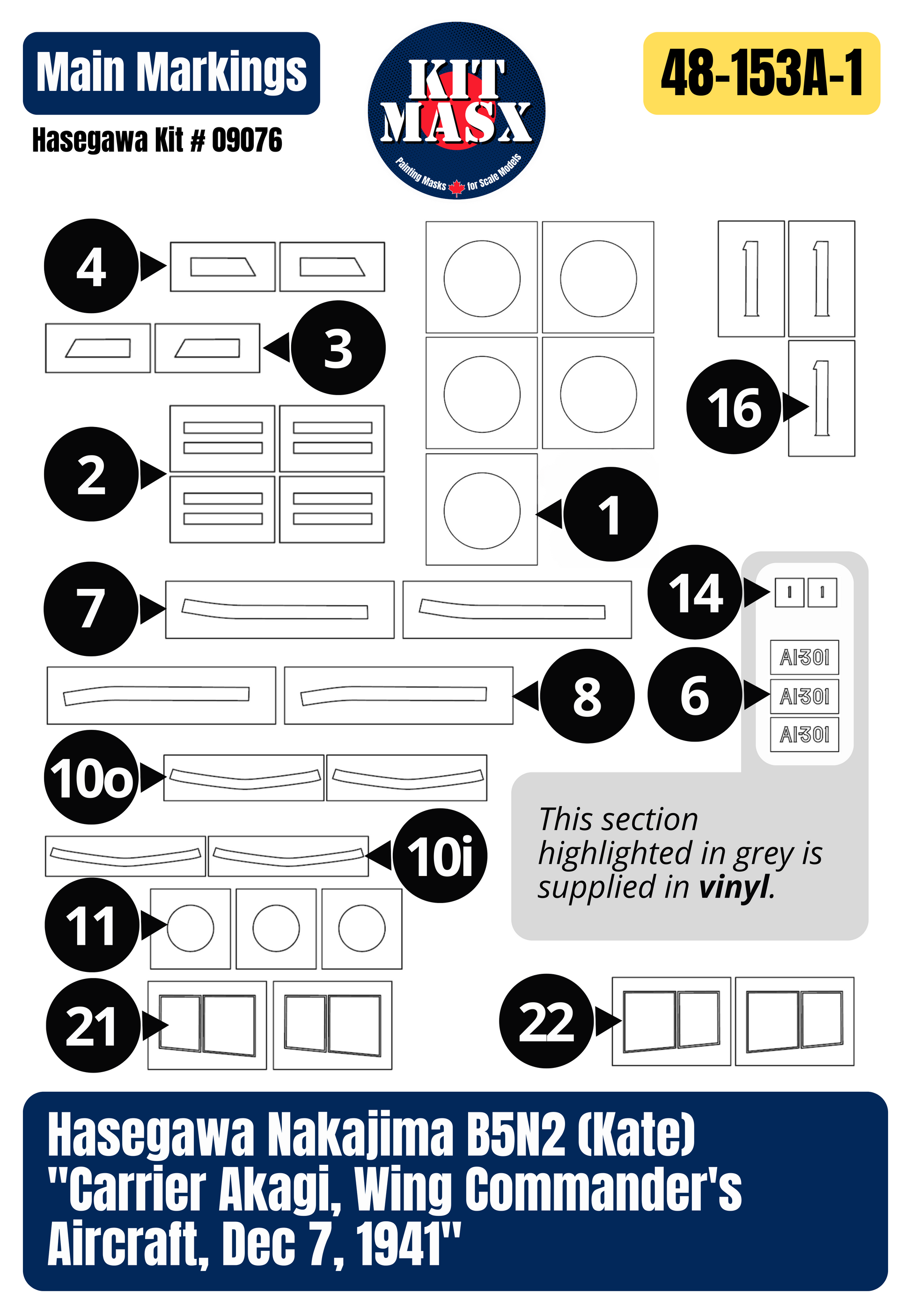 ➡️ "Carrier Akagi, Wing Commander's Aircraft, Dec 7, 1941" Marking Masks (by part #)