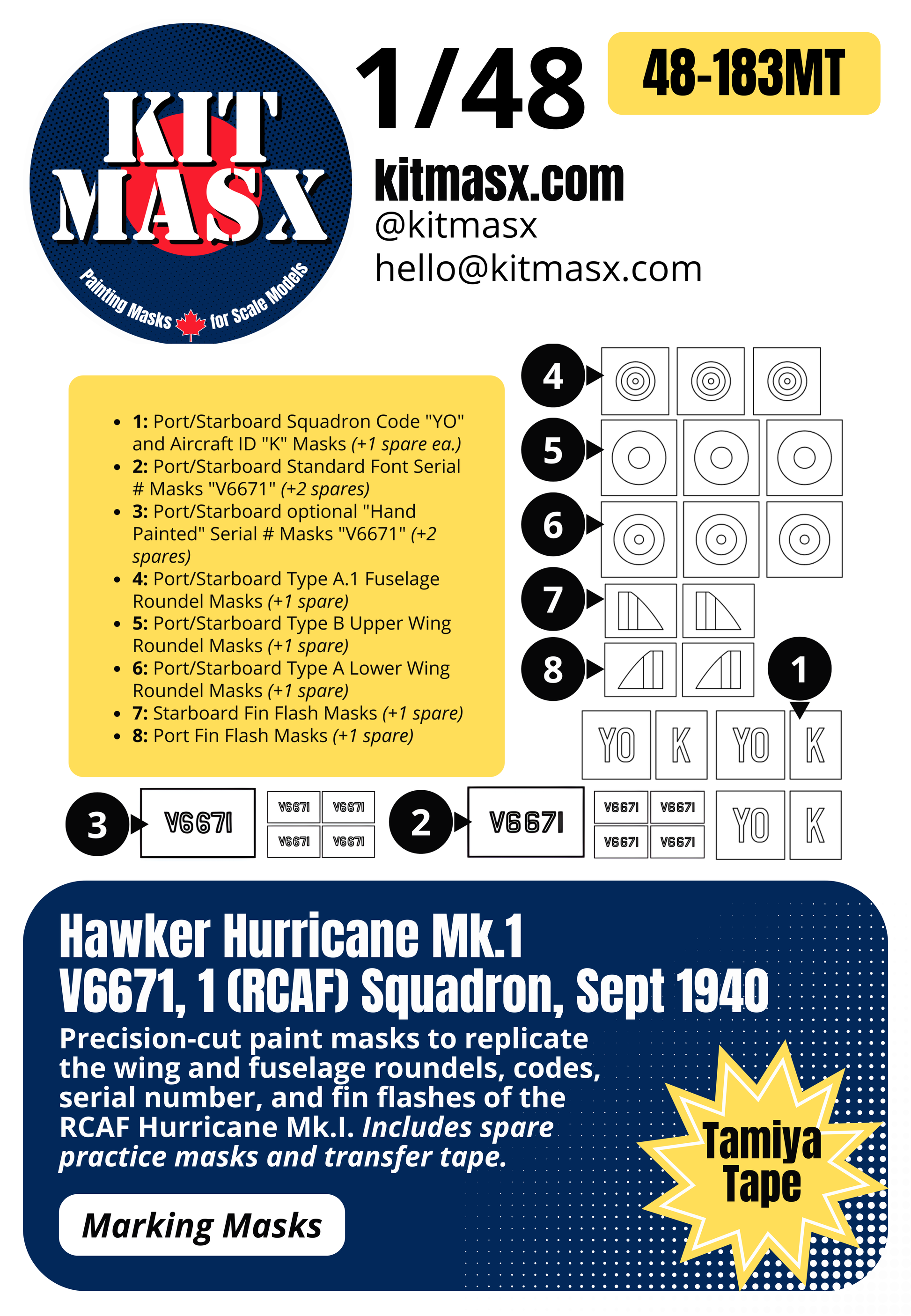 Hawker Hurricane Mk.1 V6671, 1 (RCAF) Squadron, Sept 1940 1/48 Main Marking Paint Masks
