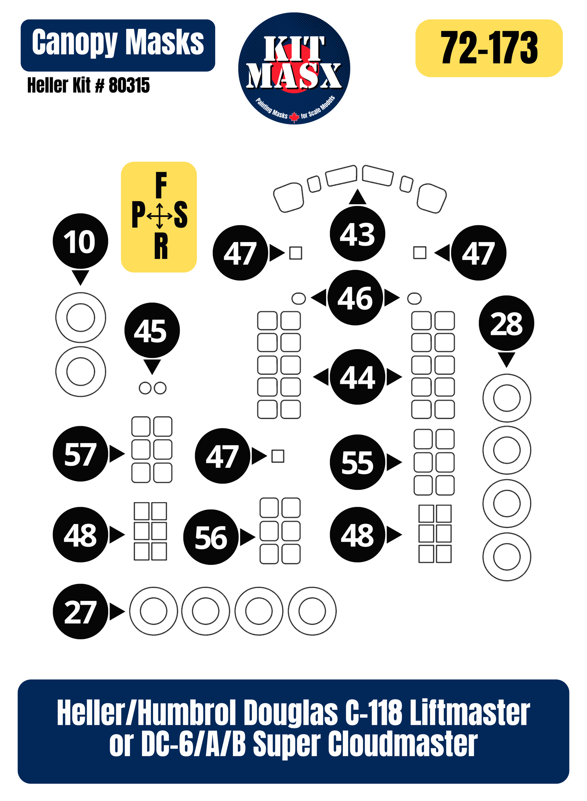 Heller Humbrol Douglas C-118 Liftmaster or DC-6/A/B Super Cloudmaster 1/72 Canopy & Wheel Paint Masks, Kit # 80315