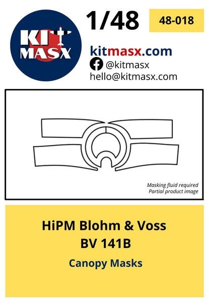 This set includes paint masks for the outer canopies and wheels of the 1998 and 2006 boxings of the 1/48 Blohm & Voss BV 141B by HiPM or the BV 141B-0 by Karo AS.