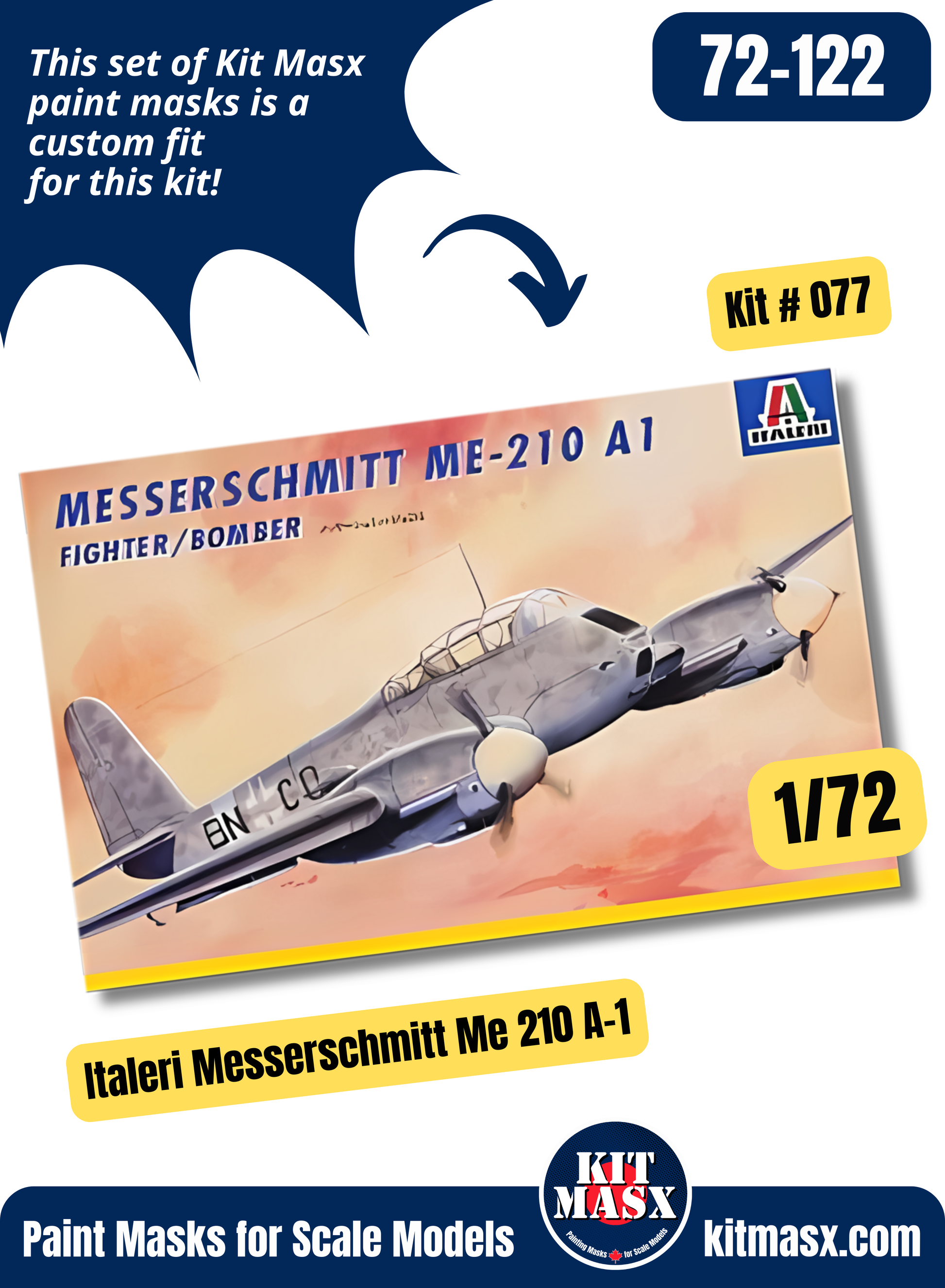 Italeri Messerschmitt Me 210 A-1/Me 410/Me 410 A-1 1/72 Canopy Paint Masks, Kit # 077