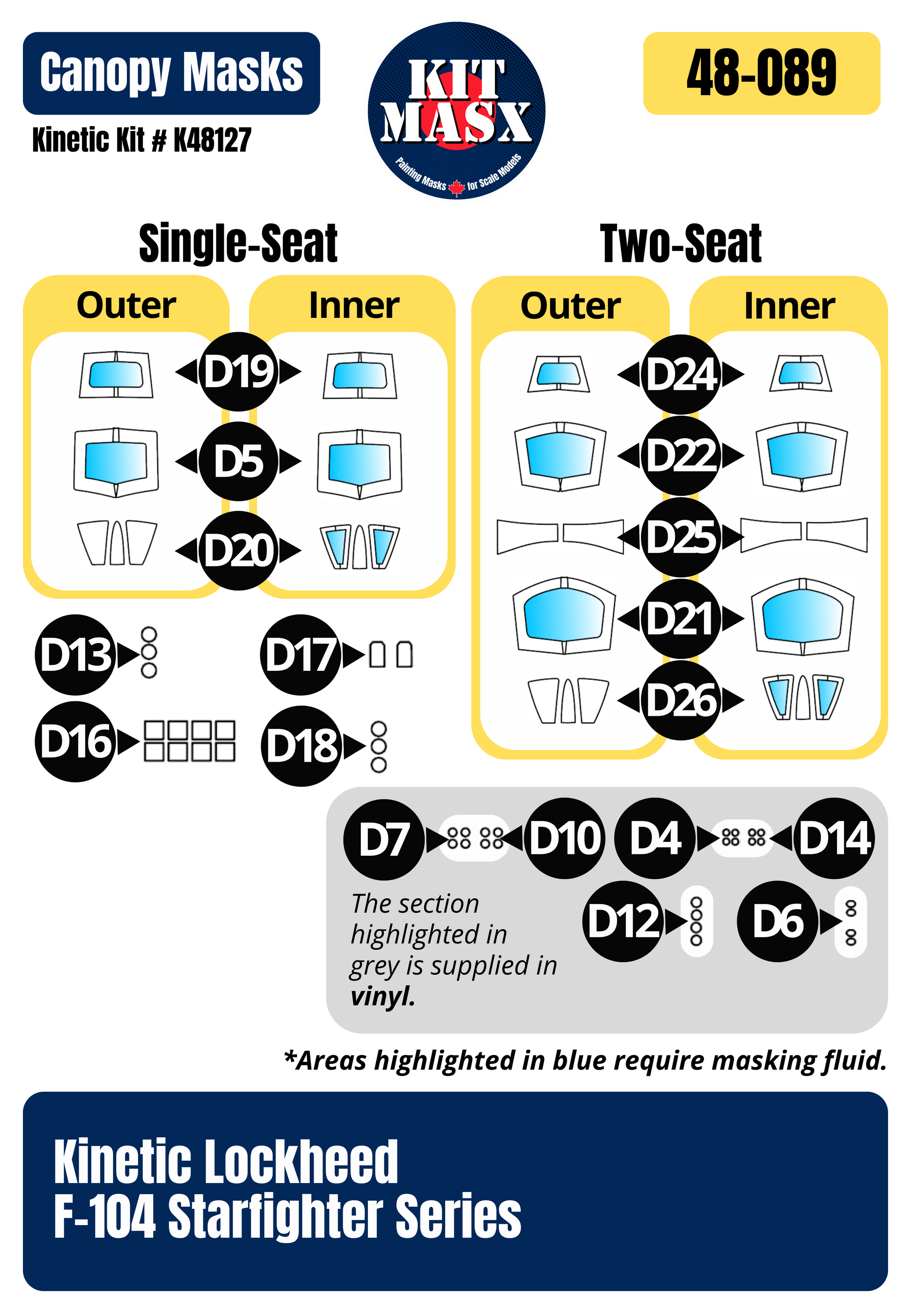 Kinetic Lockheed F-104 Starfighter Series 1/48 Canopy Paint Masks, Kit # K48127