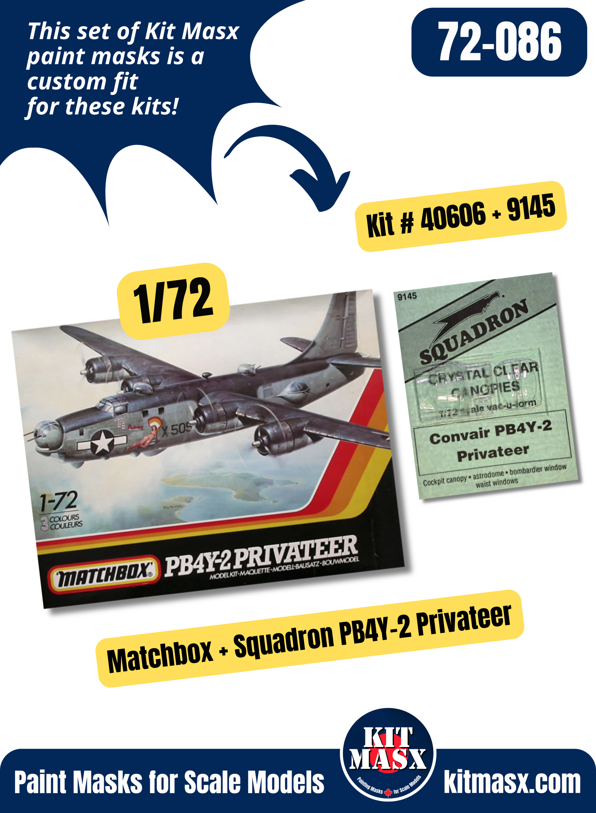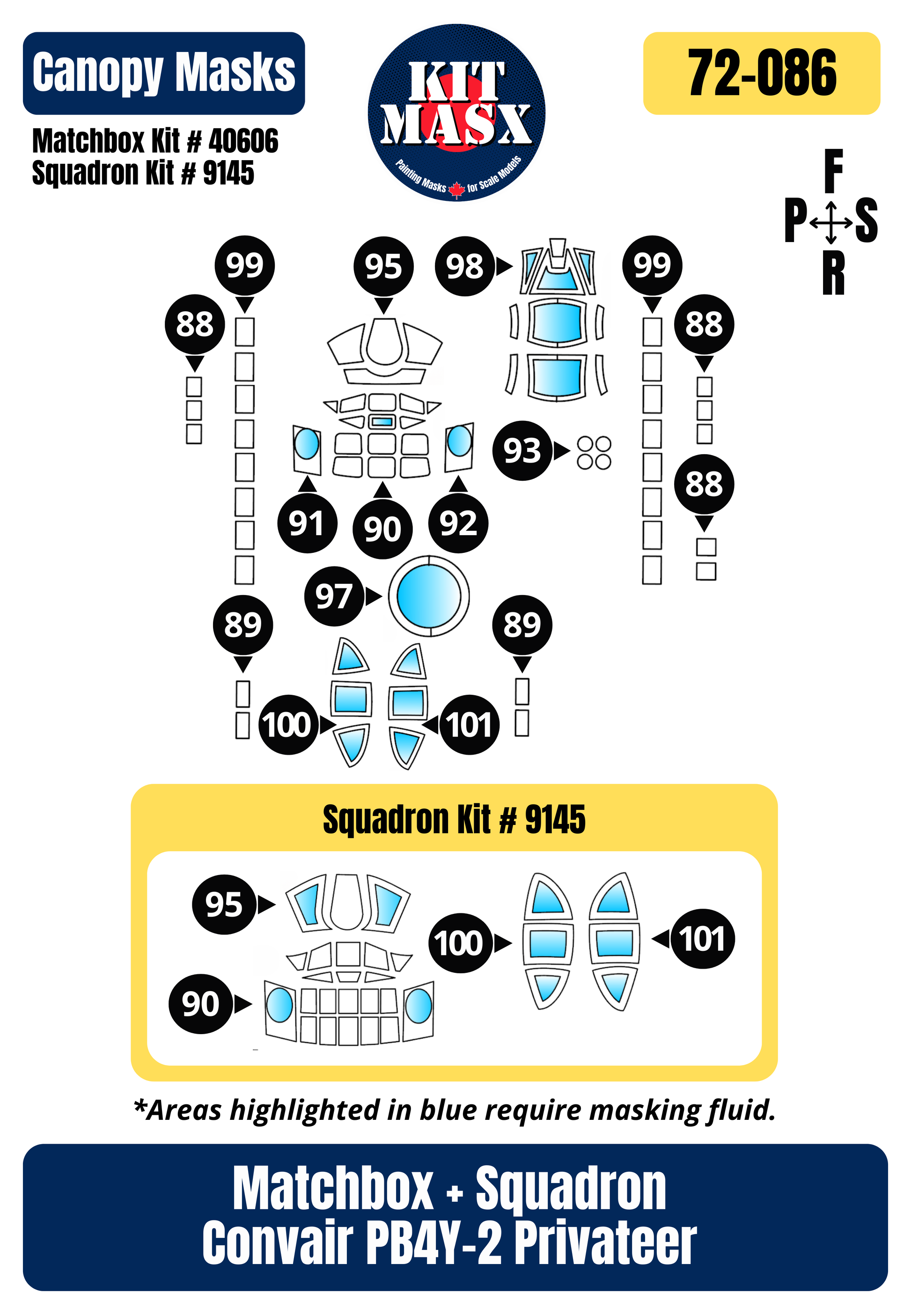 Matchbox/Squadron Convair PB4Y-2 Privateer 1/72 Canopy Paint Masks, Kit # 40606, 9145
