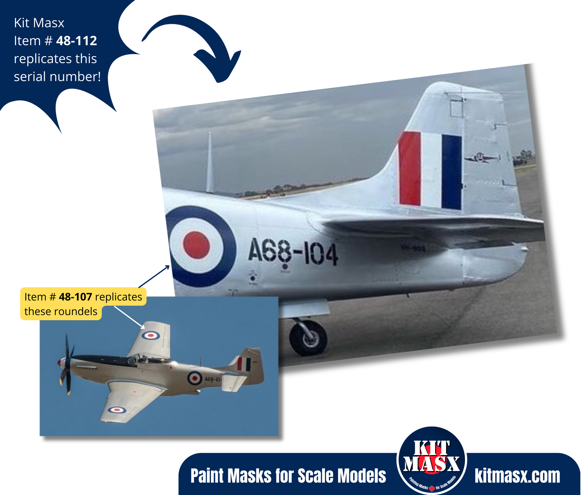 P-51D Mustang Airframe Serial Number "A68-104" 1/48 Main Marking Paint Masks