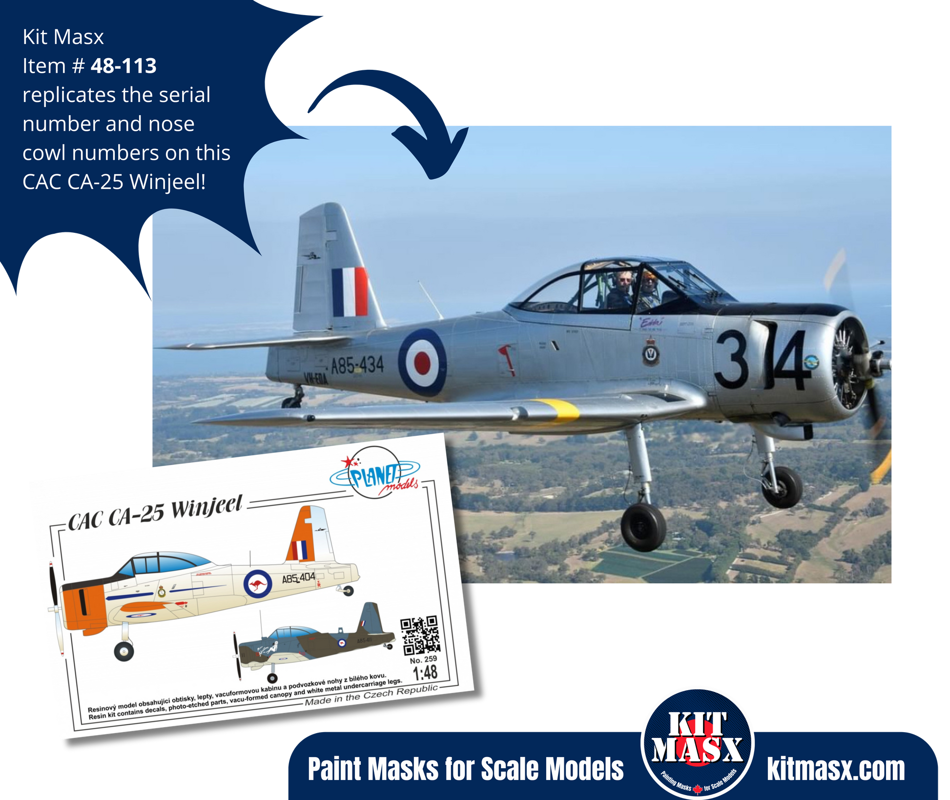Planet Models CAC CA-25 Winjeel Custom Airframe Codes 1/48 Main Marking Paint Masks