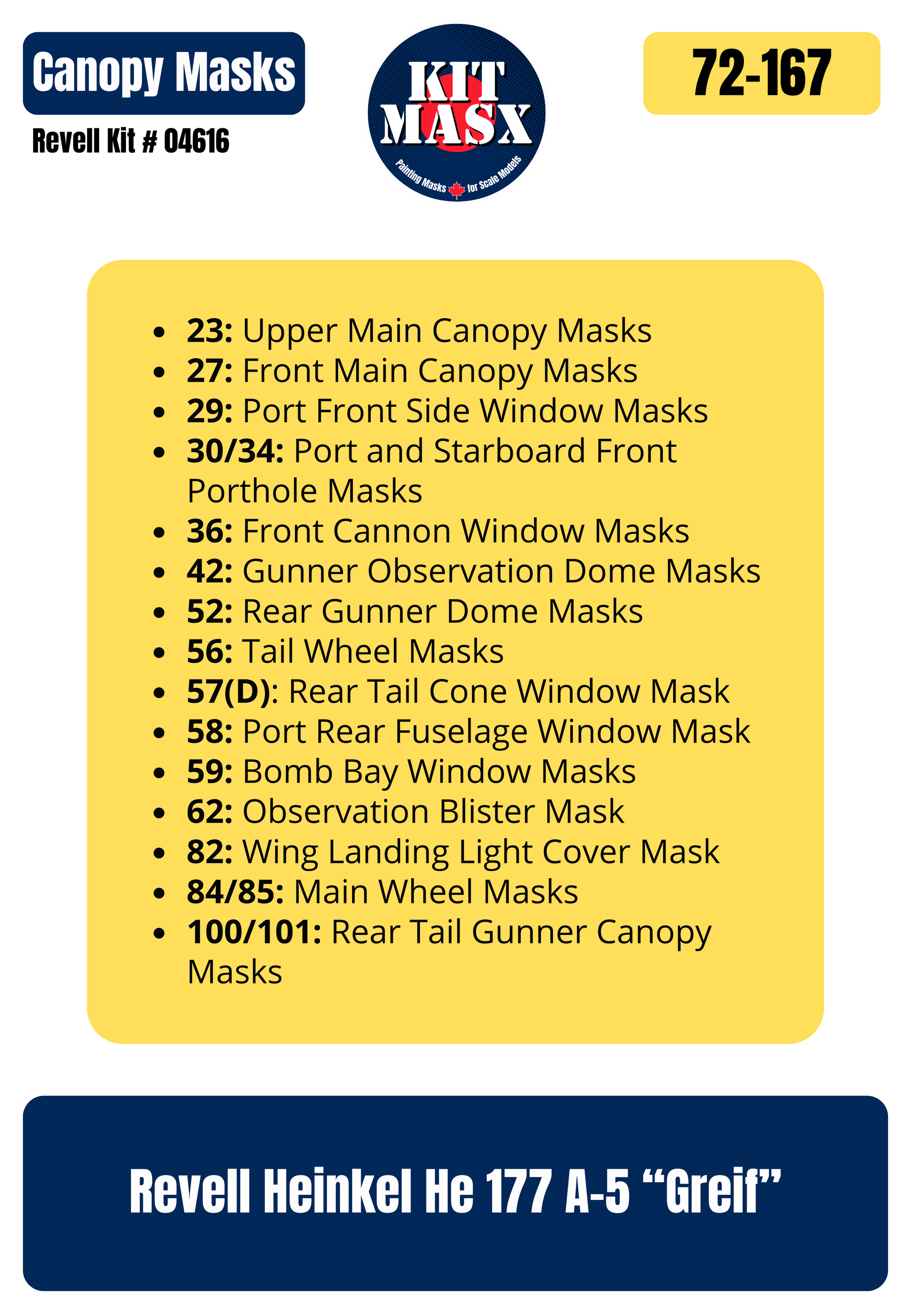 Revell Heinkel He 177 A-5 "Greif" 1/72 Canopy & Wheel Paint Masks, Kit # 04616
