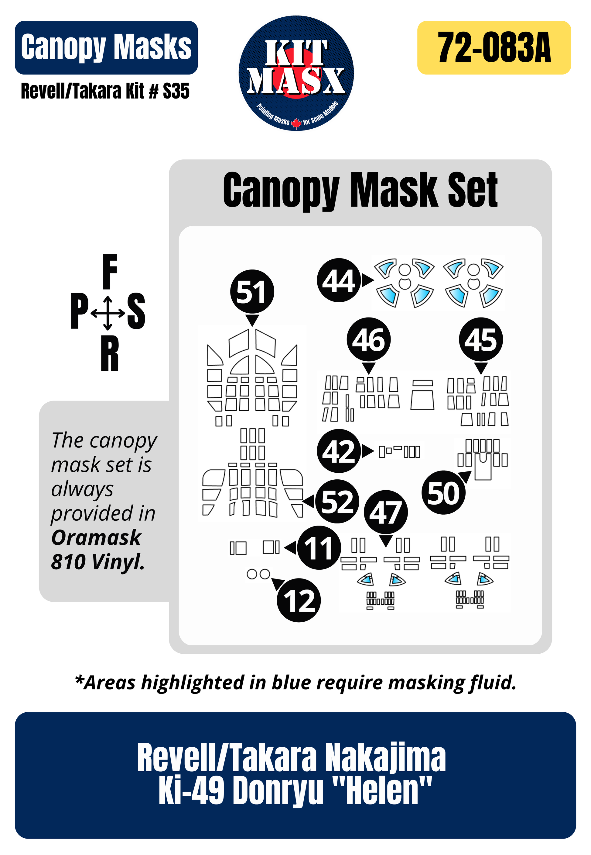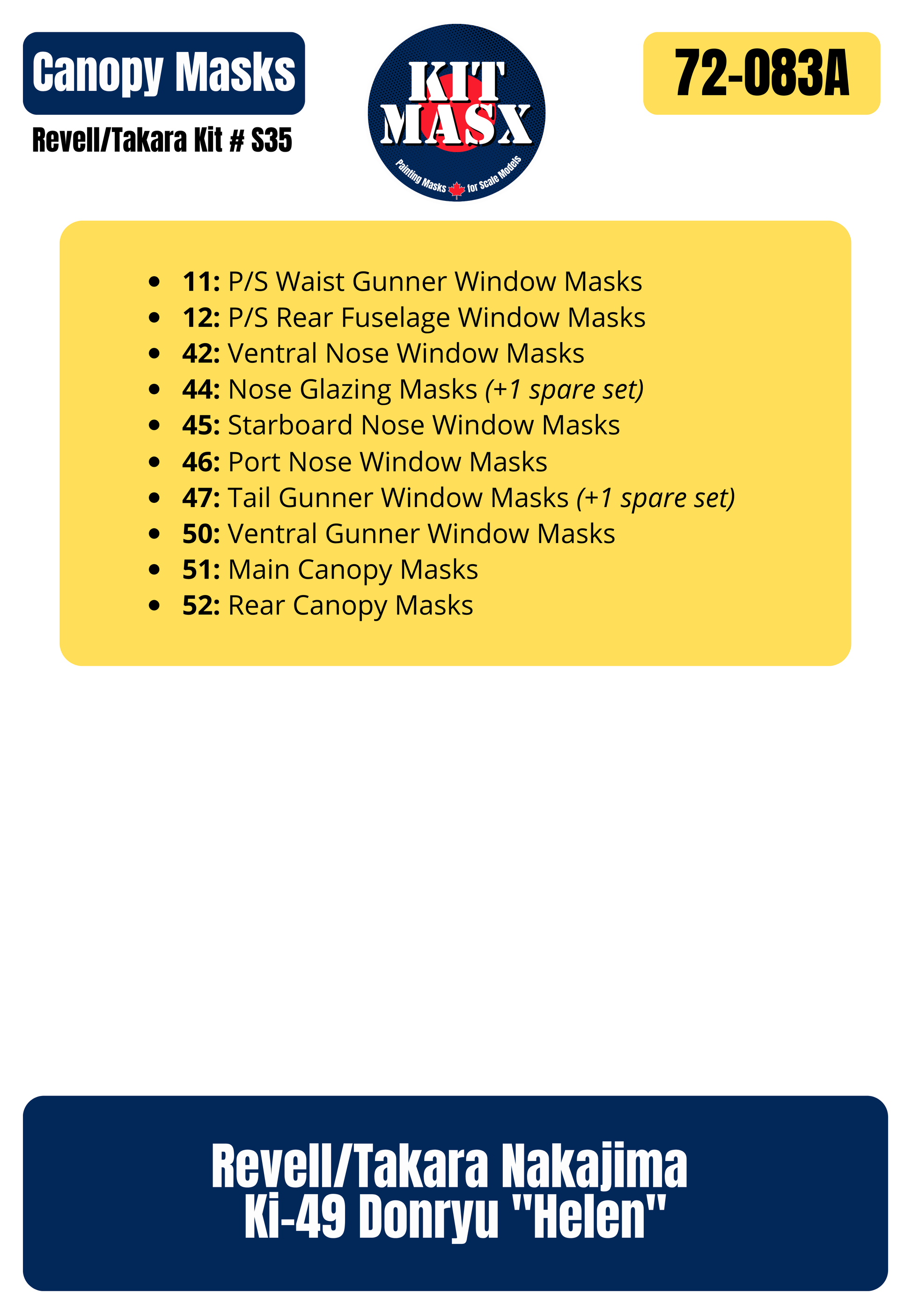 - Revell/Takara Nakajima Ki-49 Donryu "Helen" 1/72 Canopy Paint Masks, Kit # S35