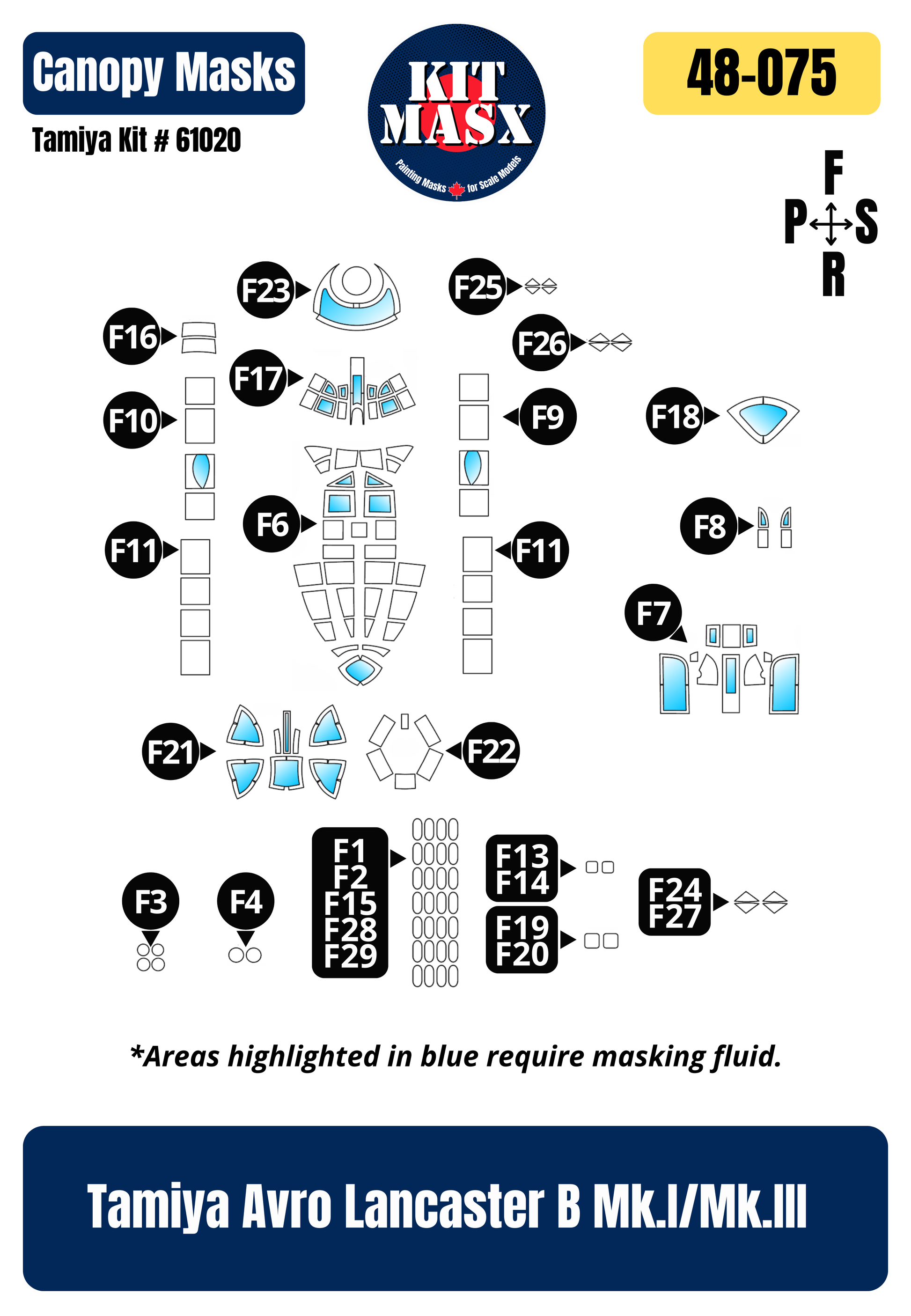 ➡️ Masking fluid is required in conjunction with the masks for compound curves. All areas requiring masking fluid are highlighted in blue in the product image.