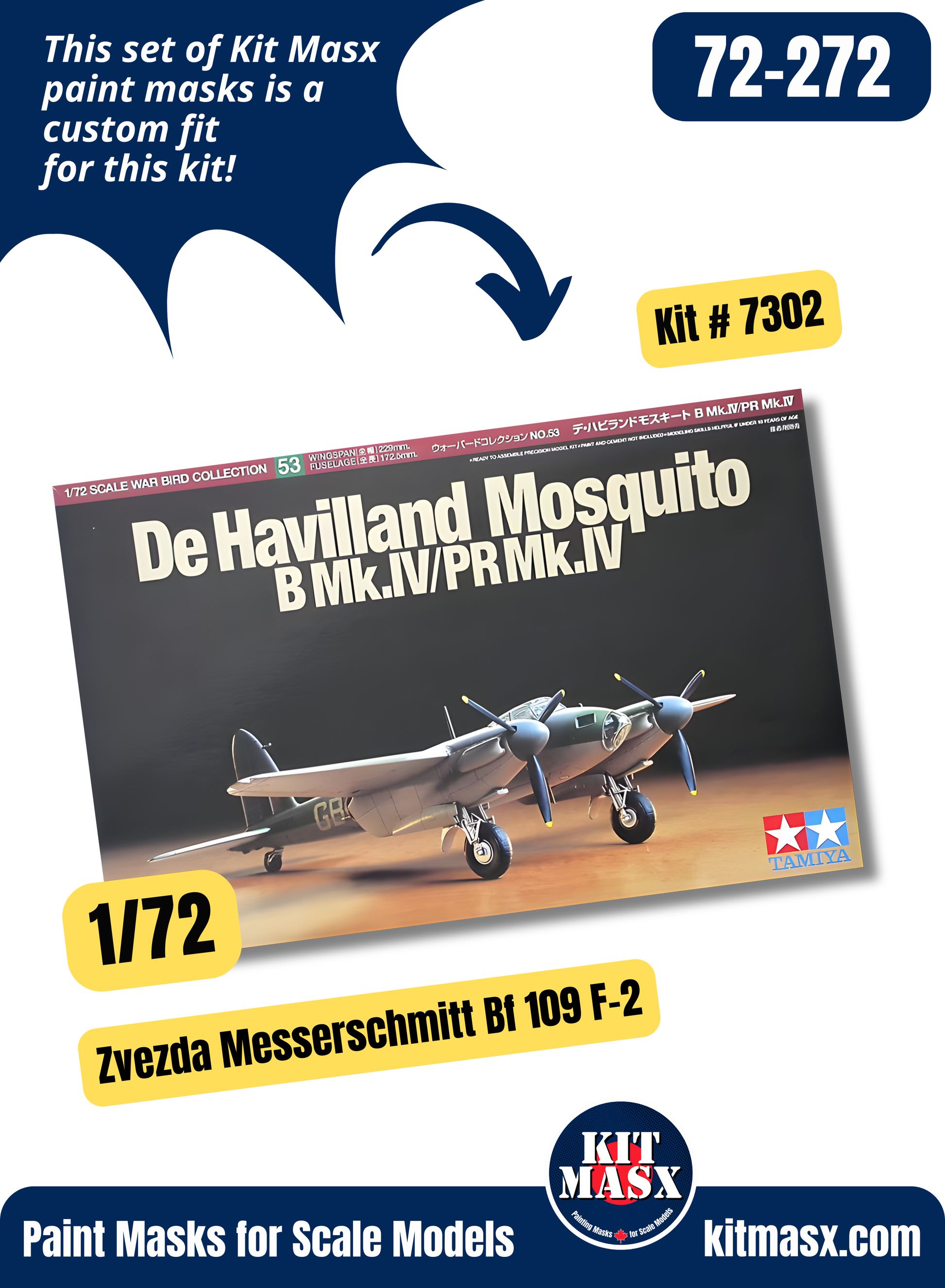 Tamiya De Havilland Mosquito B Mk.IV/PR Mk.IV 1/72 Canopy & Wheel Paint Masks, Kit # 60753