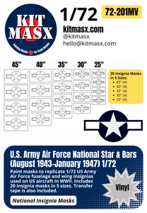 U.S. Army Air Force (USAAF) Star and Bars (August 1943-January 1947) 1/72 National Insignia Paint Masks