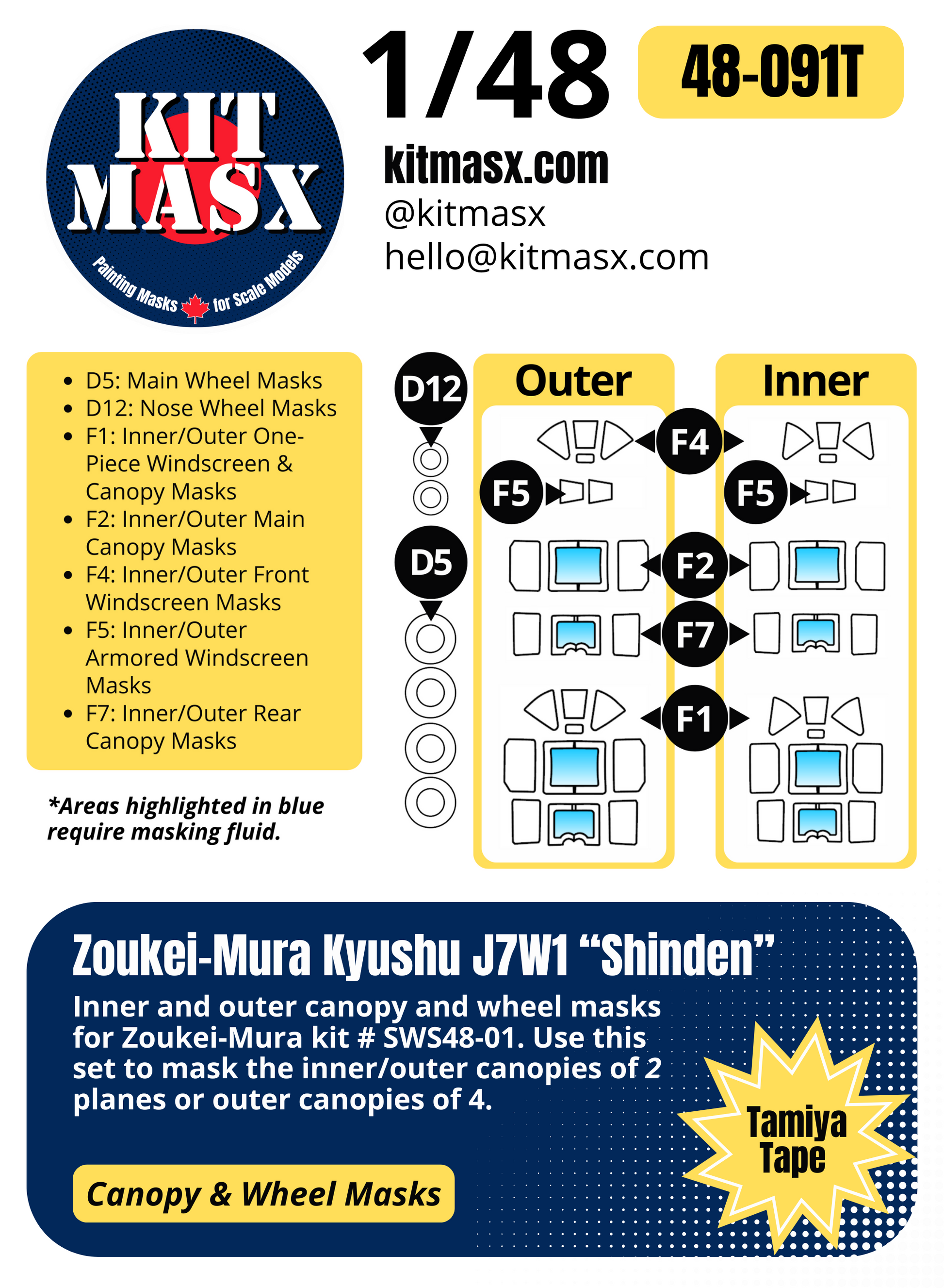 Zoukei-Mura Kyushu J7W1 "Shinden" 1/48 Canopy & Wheel Paint Masks, Kit # SWS48-01